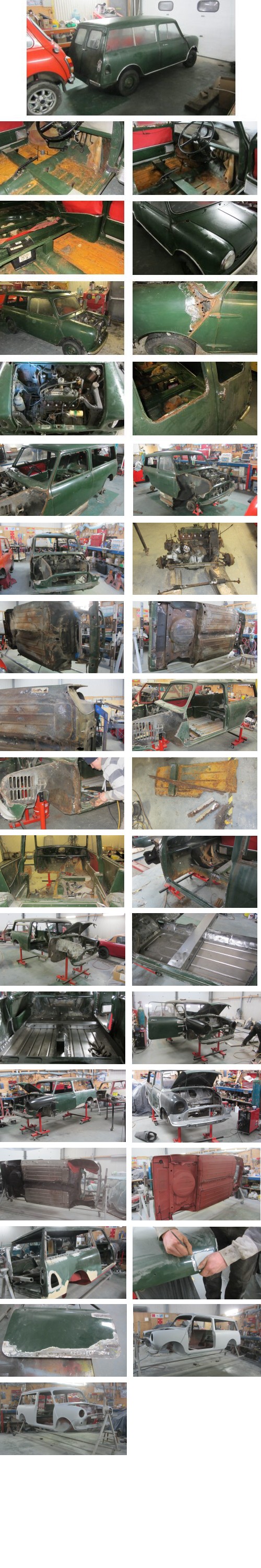 This is a Mini 1964 Mini Traveller currently in our workshop for restoration. It will need wings, apex panels, sills, floor panels, rear valence, door and scuttle panel repairs. The following is the update as of March 2013.