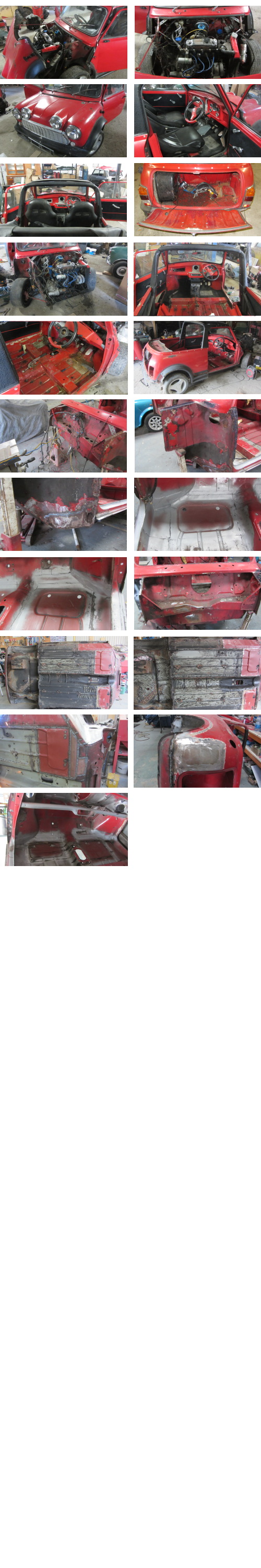 This is a Mini convertible, which has been fitted with a "Keith's Convertible" conversion. The car at some stage was probably a very good car, with a lot of nice features, but it has deteriorated quite a lot . We plan on removing the flip front and body kit as the fit is quite poor, and bringing it back to a standard round-nose front. The hood is in very good condition, as is the underside. The car needs 2 wings, front panel, bonnet, a panels, boot door, and 2 floor pans.