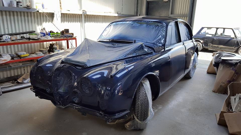 A metallic blue Jaguar Mark Two. Look at that, I'm a poet and I didn't know it.
